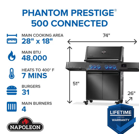 Regular price $1,879.00Unit price /UnavailableNapoleon Legacy Prestige 500 4-Burner Propane Grill w/ Rotisserie & Side Burner - P500RSIBPSS-3