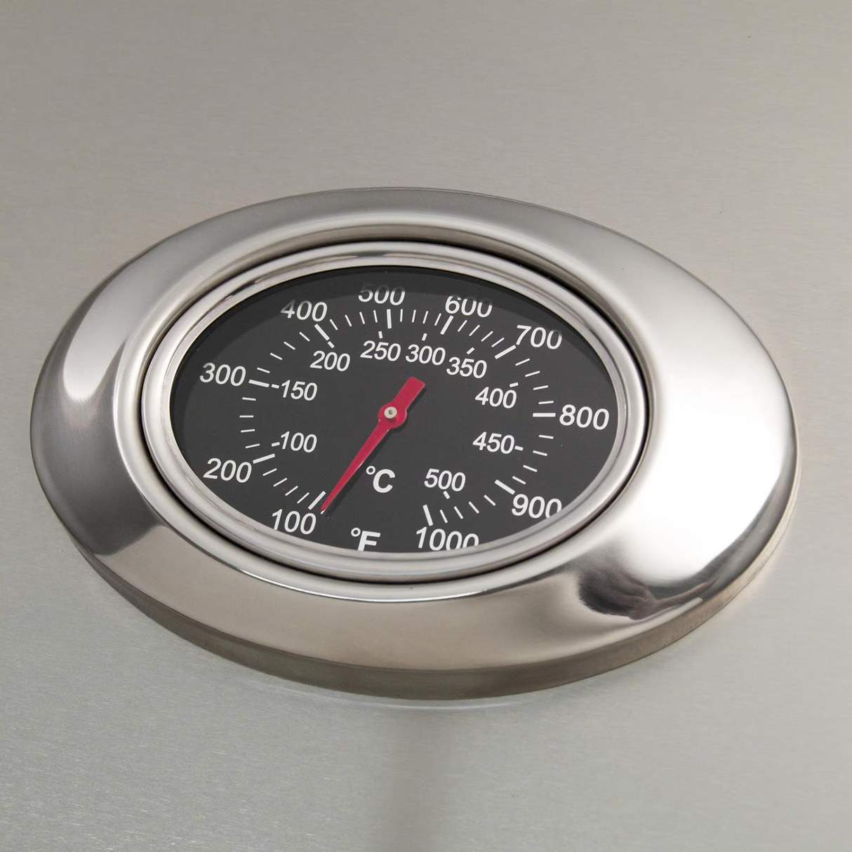 This L-Series model enhances convenience with electronic push-button ignition, interior halogen lighting, and back-lit control knobs—perfect for night grilling. Stainless steel vaporizer panels ensure even heat distribution while minimizing flare-ups, and solid brass valves provide precise temperature control. A funneled grease management system with a slide-out drip tray makes cleanup simple, while the included 12,000 BTU infrared rotisserie back burner lets you slow roast to perfection. Mounted on durable 2 ½-inch wheels, this portable grill arrives fully assembled (except side shelves) and ready to roll. With its sleek satin-finish hood, custom thermometer, and robust construction, this AOG grill delivers lasting performance and timeless style.