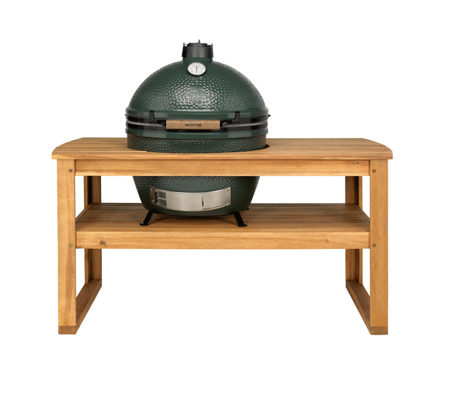 Nature takes its course. Just look at the Acacia Table. This handmade table consists of solid acacia planks and has naturally shaped grain and unique color variations. Therefore, each table is unique. The Acacia Table transforms your Big Green Egg into a complete outdoor kitchen with enough space for utensils and dishes. Place the Egg in the table on a Table Nest for necessary air circulation.