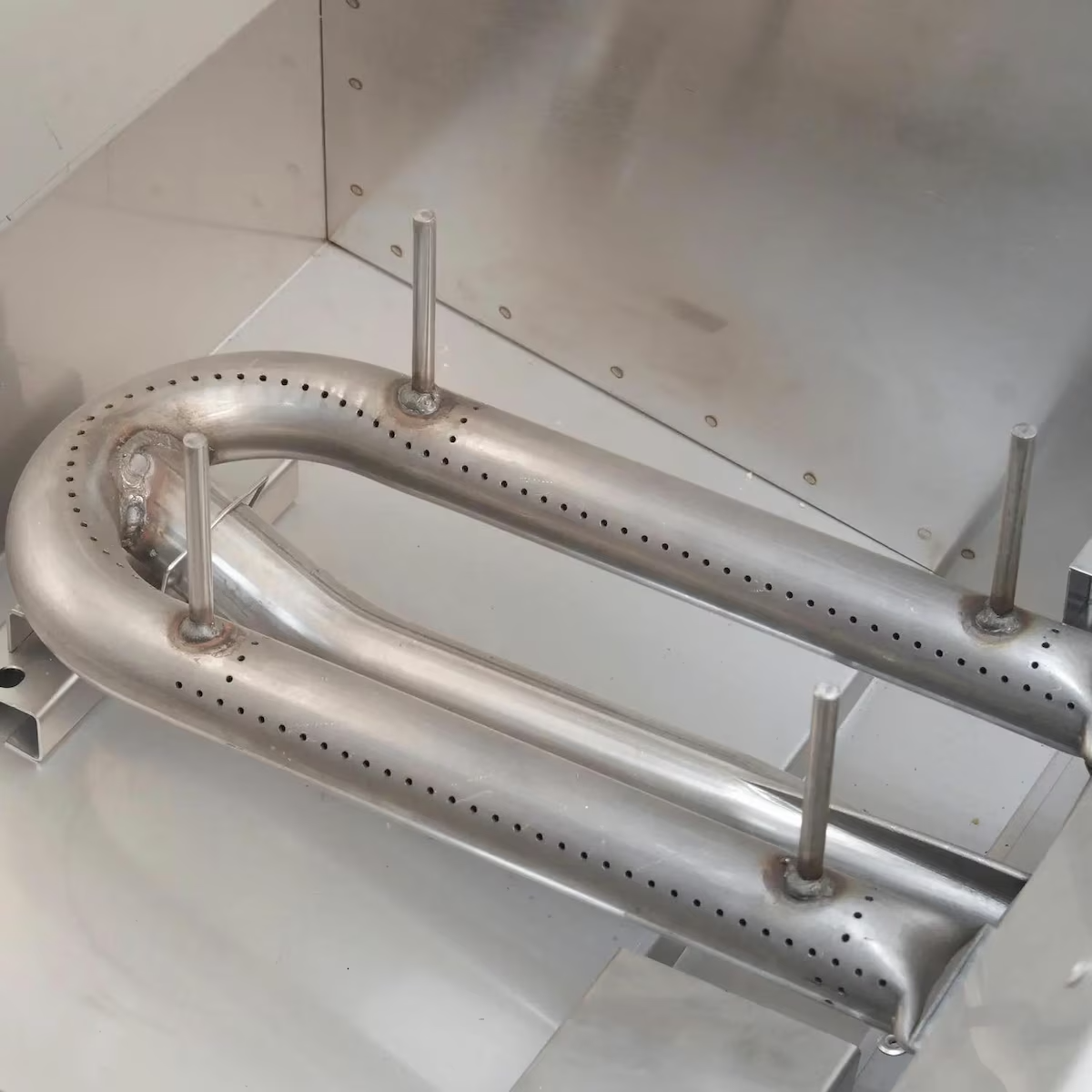 - Three 16-gauge U-shaped tubular stainless steel burners delivering 69,000 BTUs of cooking power