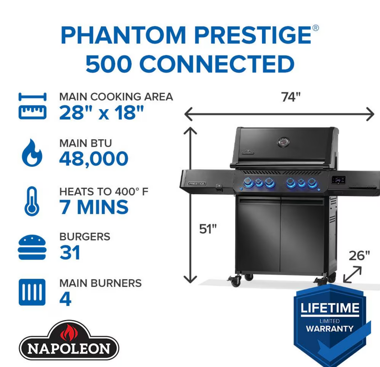 Napoleon Prestige Phantom 500 Connected 4-Burner Propane Grill w/ Rotisserie, WiFi & Bluetooth